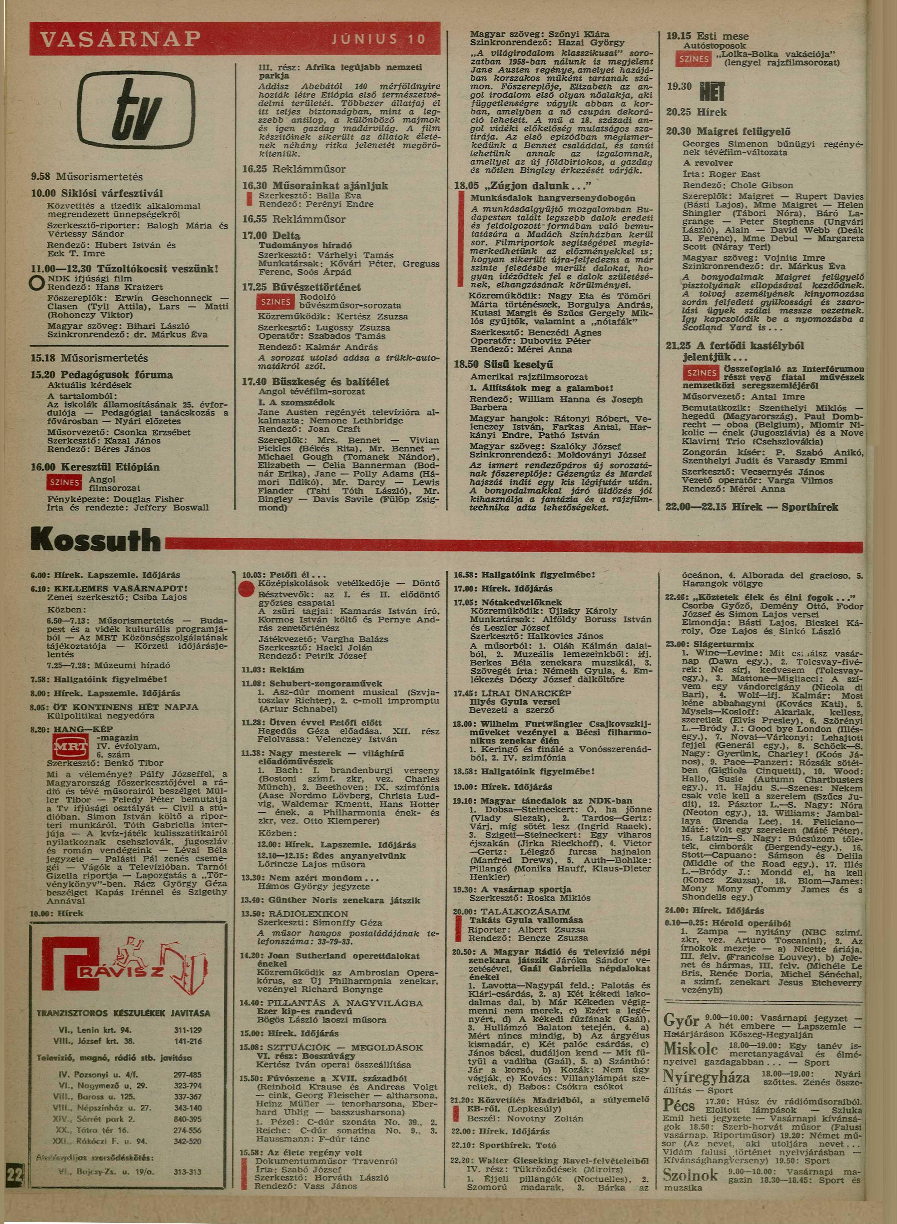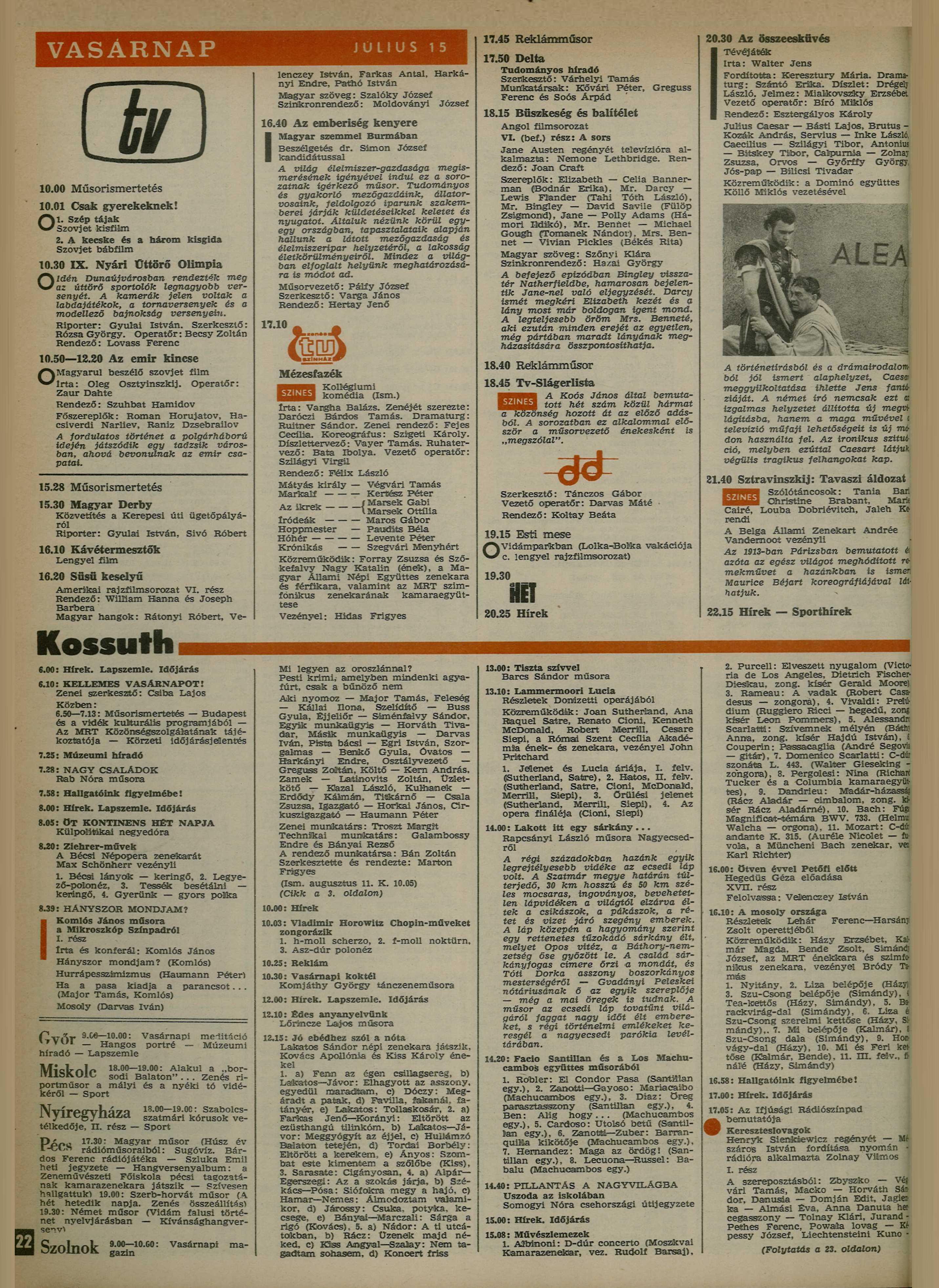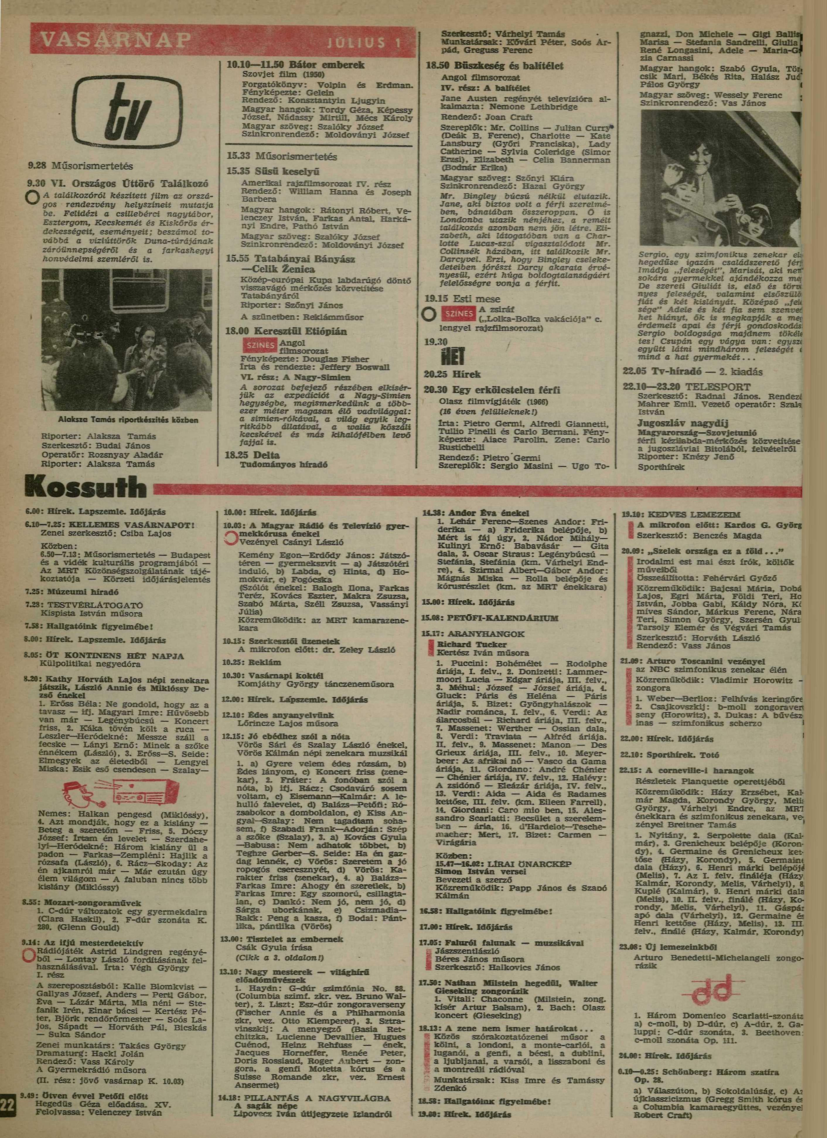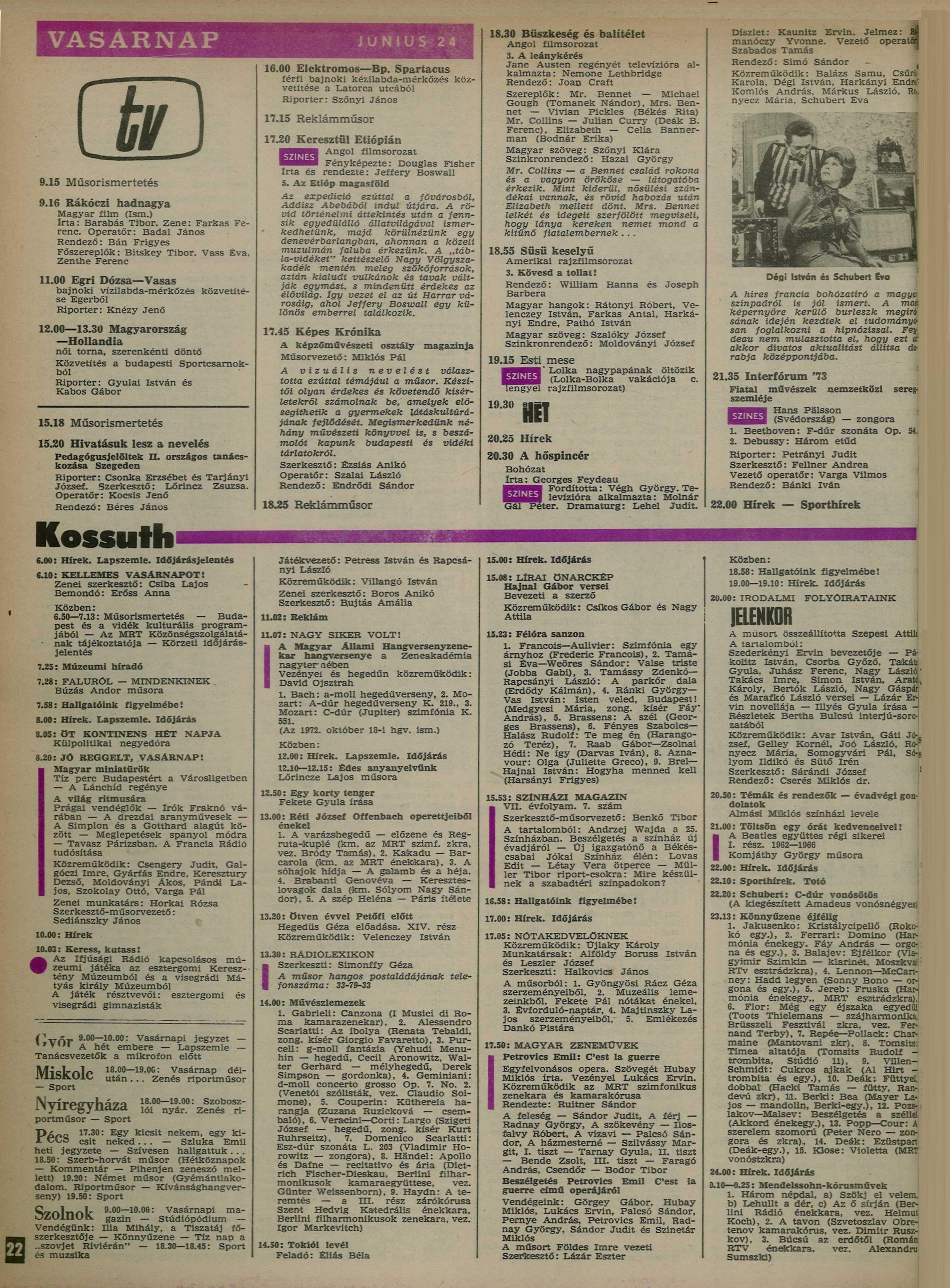 - ↑ a b c d RTV, 1973. év, 26. hét. MTVA Archívum