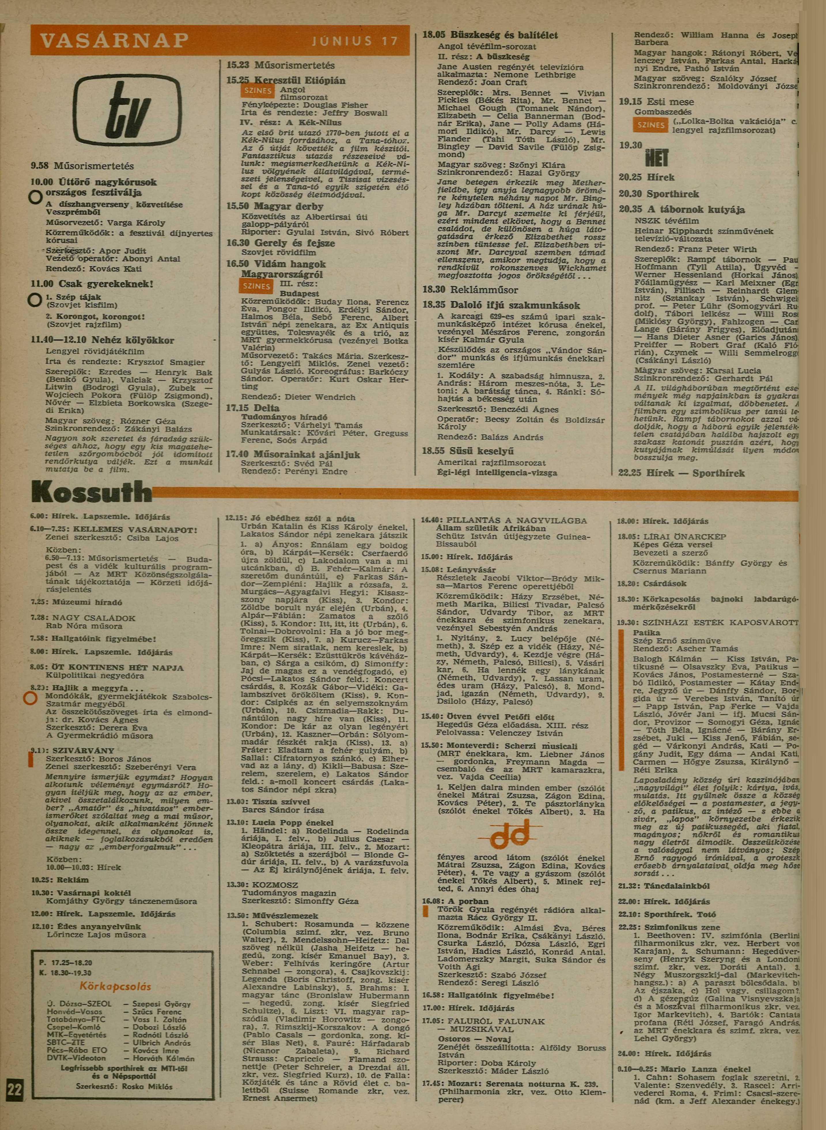 - ↑ a b c d RTV, 1973. év, 25. hét. MTVA Archívum